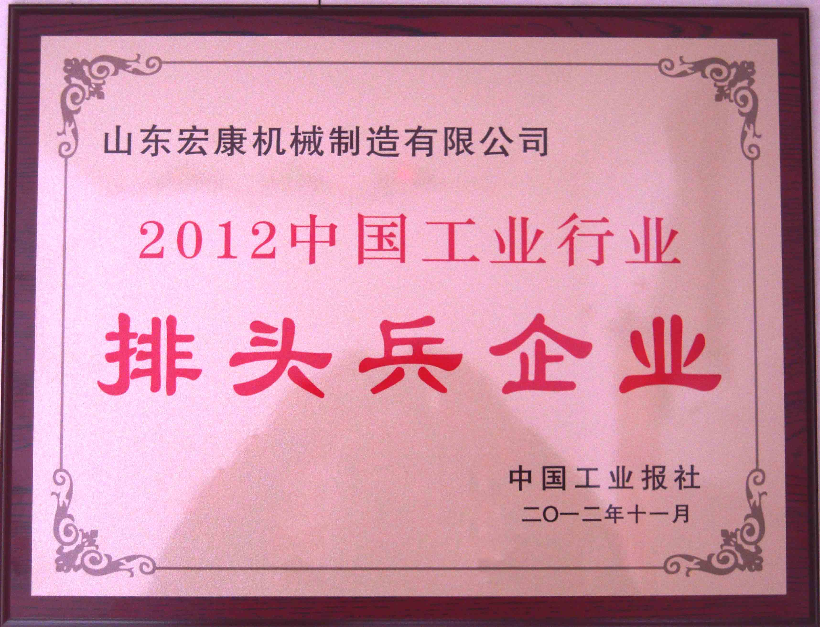 11月1日,中国工业行业排头兵企业发布暨转型升级发展论坛在北京隆重举行,山东宏康机械制造有限公司喜获“2012金属制造行业排头兵企业”荣誉称号,受董事长委托,常务副总经理潘宪平代表集团公司赴京领奖。