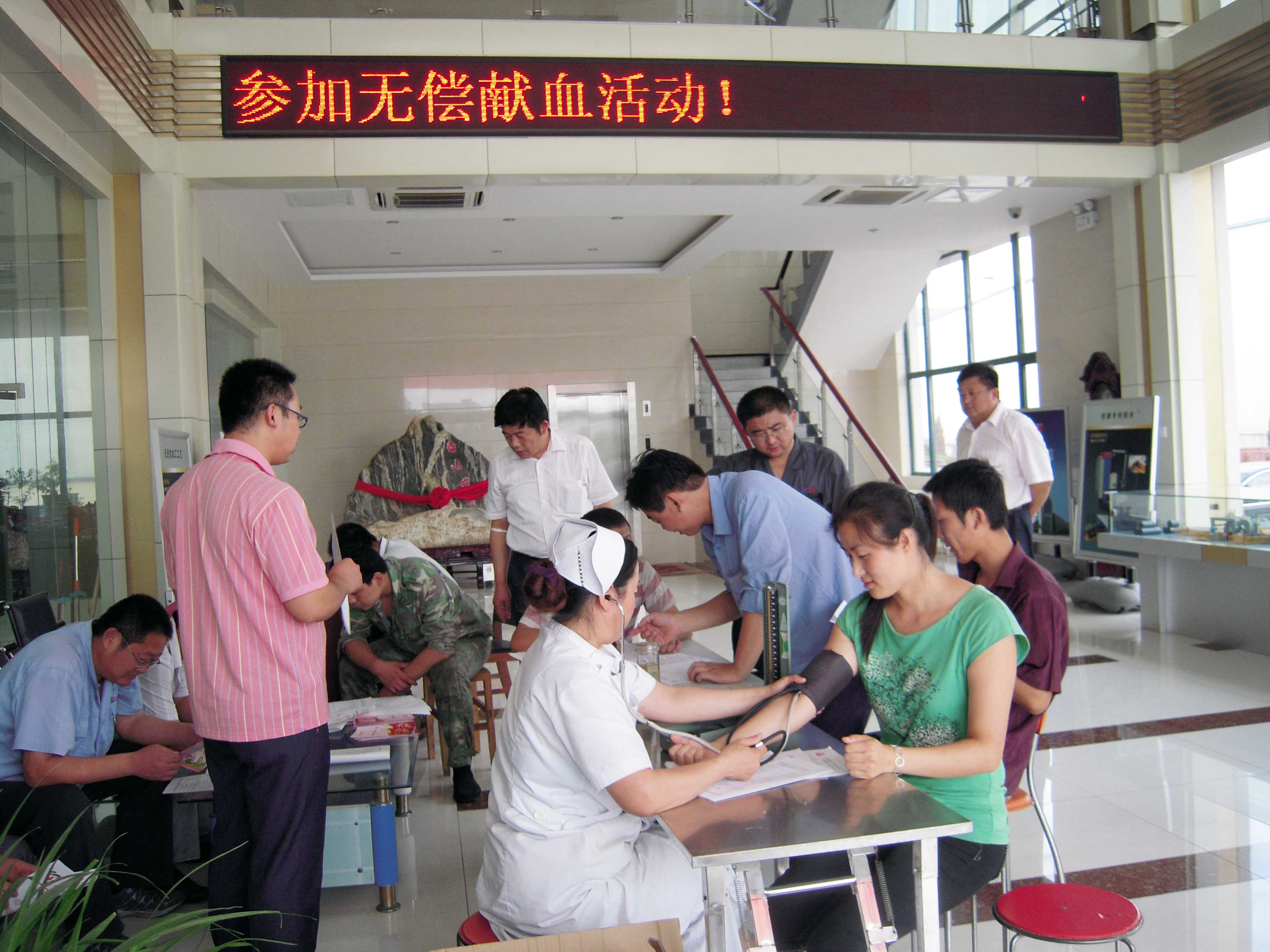 奉献社会,情浓于血。在全市临床用血紧张、血站出现用血告急,各大医院每天上百名病人急需输血挽救的紧急时刻,宏康集团积极响应泰安市公民献血领导小组办公室发出的献血倡议,立即发动了“情满宏康,心系中华” 、“献一次血,送一颗心,播一片情,撒一份爱”无偿献血活动。8月27日,近200名员工怀着一颗赤诚的心、伸出温暖的臂膊将这份爱继续演绎和传递,用实际行动表达了对社会的关爱之心。本次献血活动共献血6万多毫升,受到了献血站人员的高度评价。