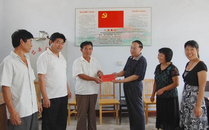一个是位居全国同行业前列的高新技术企业---山东宏康机械制造有限公司,一个是名不见经传的落后小山村---大坦地。一企一村,如果不是岱岳区委组织部开展的“城乡手拉手、共建新农村”活动,也许不会走到一起成为 “一家人”。8月14日,我们作为公司代表在泰山青春创业开发区领导和池子崖管区领导陪同下,再次驱车前往该村,向村里送去了扶持金两万元。村支书朱安军握着我们的手,心情激动地说:感谢宏康公司对我们村的帮助,感谢康总对群众的关心, 我们村两委一定不负厚望,千方百计带领群众早日脱贫致富。