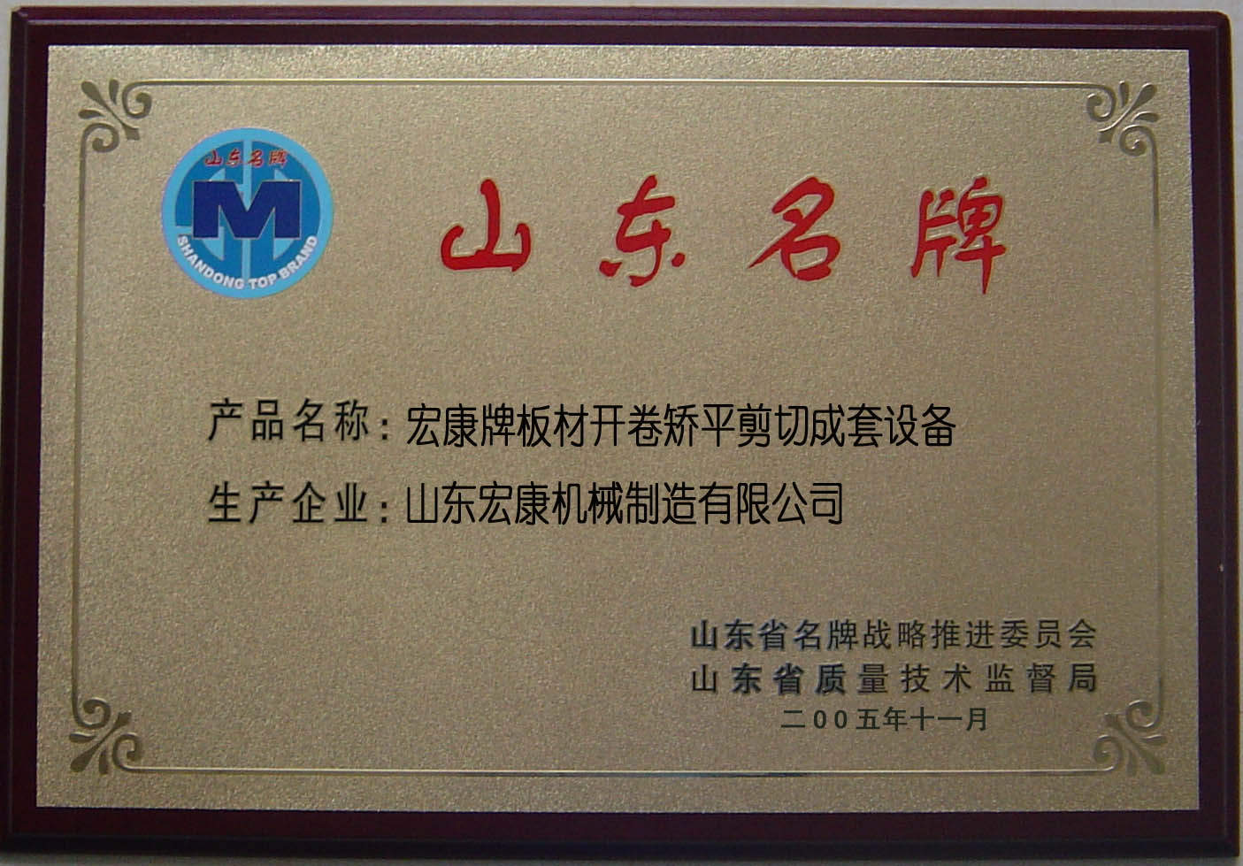 按照《山东名牌产品评价管理办法》规定的程序,在企业自愿申请的基础上,各市审核推荐,各专家组进行材料评审和现场抽查,省名牌战略推进委员会、省质量技术监督局组织用户满意度调查和综合评价,经省政府同意,山东宏康机械制造有限公司生产的宏康牌板材开卷矫平剪切成套设备被评为2005年山东名牌产品,现予以公告。