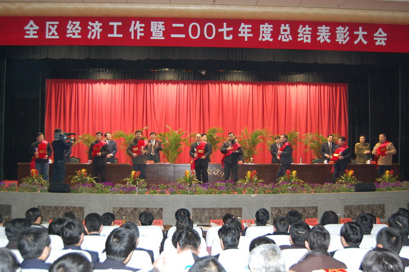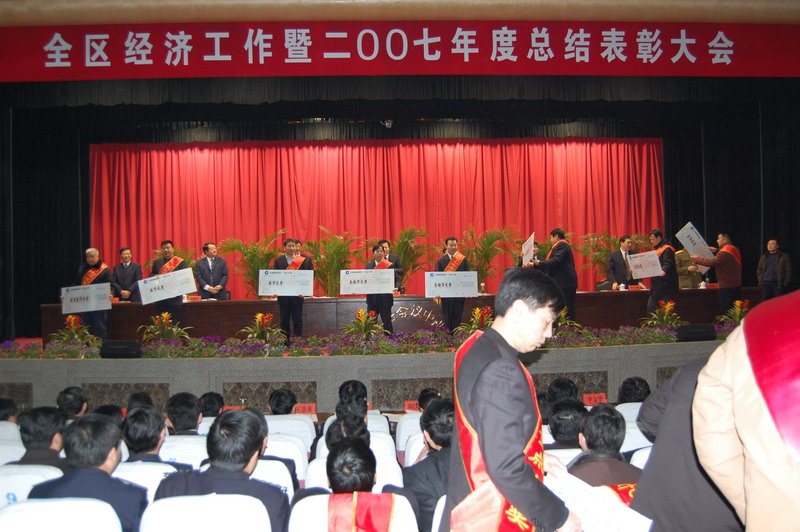 2月14日上午,董事长、总经理康凤明参加岱岳区经济工作会议暨2007年度总结表彰大会,并上台领奖。我公司“省级企业技术中心”项目获奖金30万元,康总获2007年度全区“十大民营企业家”荣誉称号,并获“招商项目引荐人”奖金2万元。