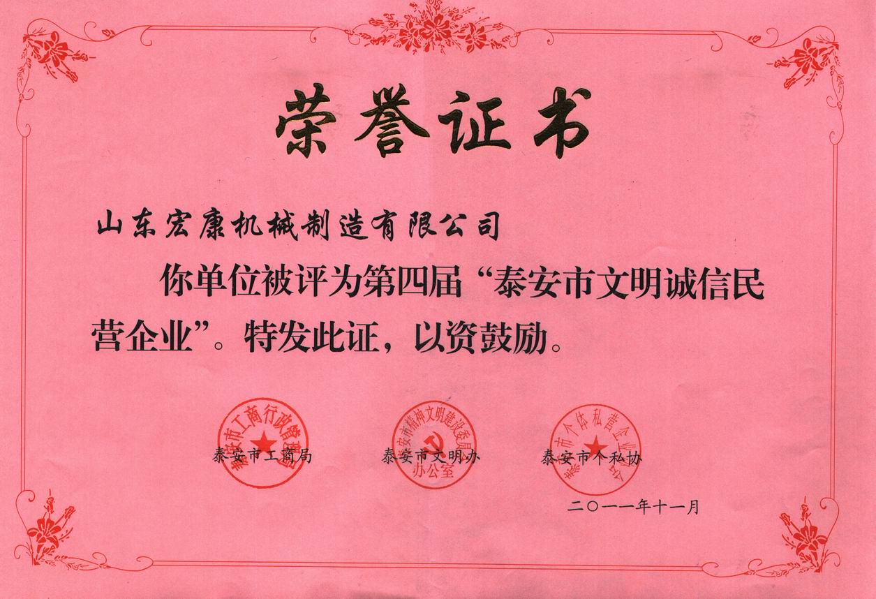 我集团被泰安市工商局、市文明办、市个体私营企业协会评为“第四届泰安市文明诚信民营企业”。